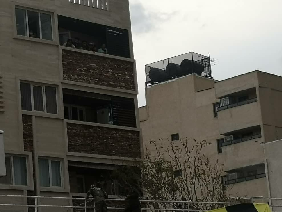 * برخی هواداران با حضور در بالکن ساختمان پشت ورزشگاه حافظیه بازی را تماشا کردند. در این میان یک نوجوان با دست گرفتن میکروفونی مشغول گزارش بازی برای افرادی شد که از این ساختمانها بازی را تماشا میکردند.