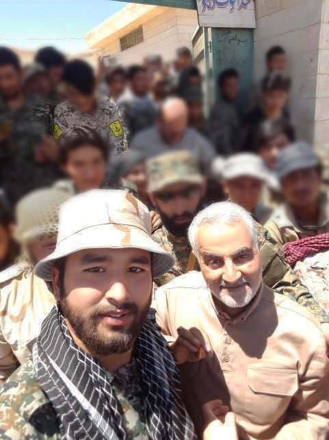 عکس یادگاری یک رزمنده فاطمیون با حاج قاسم