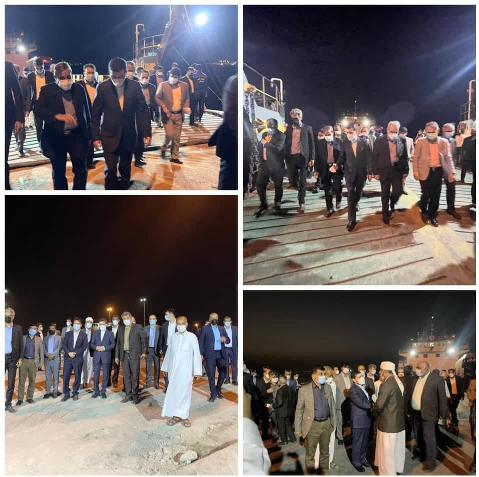 اعضای کمیسیون عمران مجلس شورای اسلامی، منصور آرامی و محمد آشوری، نمایندگان مردم هرمزگان در مجلس، یوسف عابدینی، مدیرکل راهداری و حمل و نقل جاده ای استان که با استقبال علی درویش پور، رییس هیات مدیره و مدیرعامل سازمان منطقه آزاد قشم وارد این جزیره شدند.