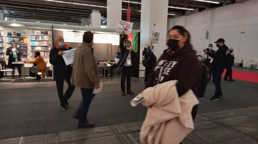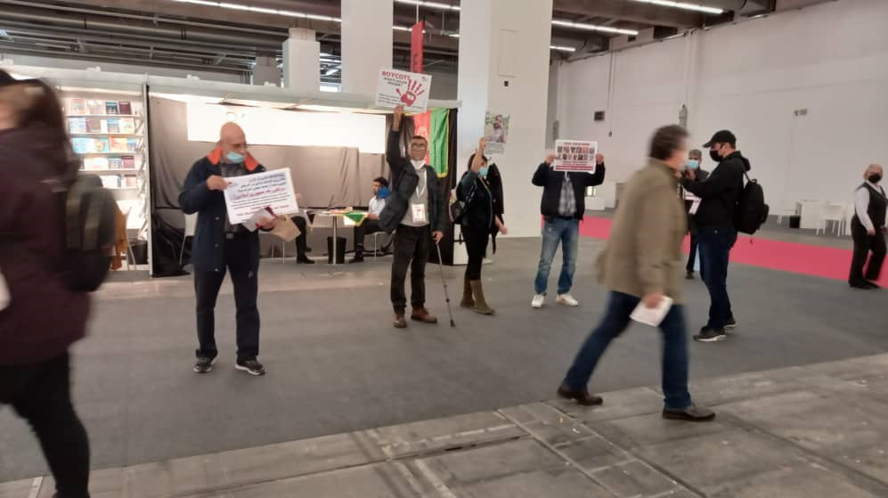 منافقان هر سال به امید دریافت مزایای اقامتی و مالی با حضور در غرفه ایران و سردادن شعار و به همراه داشتن تصاویر از این ماجرا تصویربرداری کرده و پس از آن خدماتی دریافت میکنند، امسال نیز همین اتفاق رخ داد، اما با توجه به مجازی بودن بخشی از نمایشگاه تنها ۴ نفر از این گروه فریب خورده در غرفه ایران حاضر شدند، ولی بلافاصله پلیس آنها را متفرق کرد.