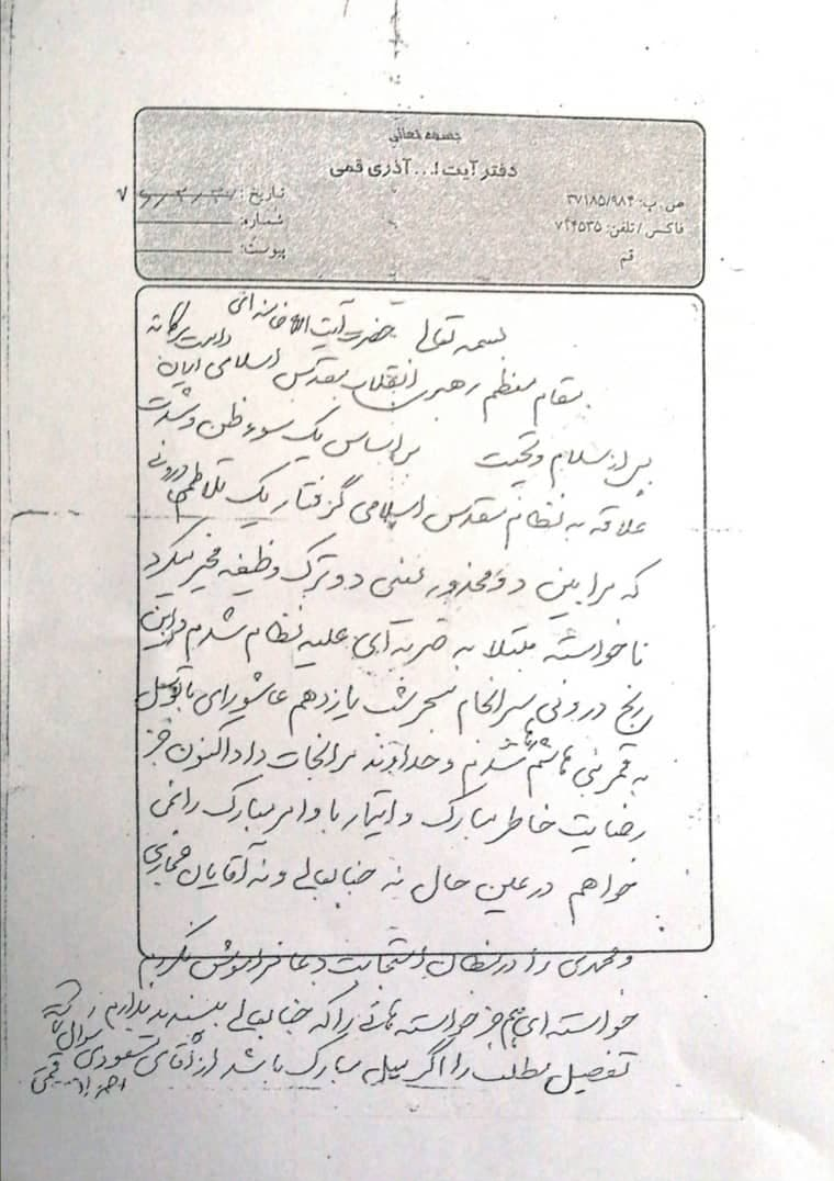 به گزارش برگزیده های ایران، سید احمد شمس، از فعالین فرهنگی و انقلابی قم و از همراهان و مرتبطین با دفتر آیت الله آذری قمی در گفتوگو با خبرنگار فارس و در پاسخ به سوالی درباره نامه آیت الله آذری قمی به مقام معظم رهبری و طلب حلایت از ایشان ضمن تأیید وجود اصل نامه و ارسال آن به رهبر انقلاب، گفت: در زمان ارسال این نامه، آیت الله مسعودی مسئول روابط عمومی جامعه مدرسین حوزه علمیه بود و آیت الله آذری قمی نامه را بدست ایشان رسانده بود که به رهبری رسانند و قطعا هم بدون شک نامه حضور مقام معظم رهبری رسیده است.