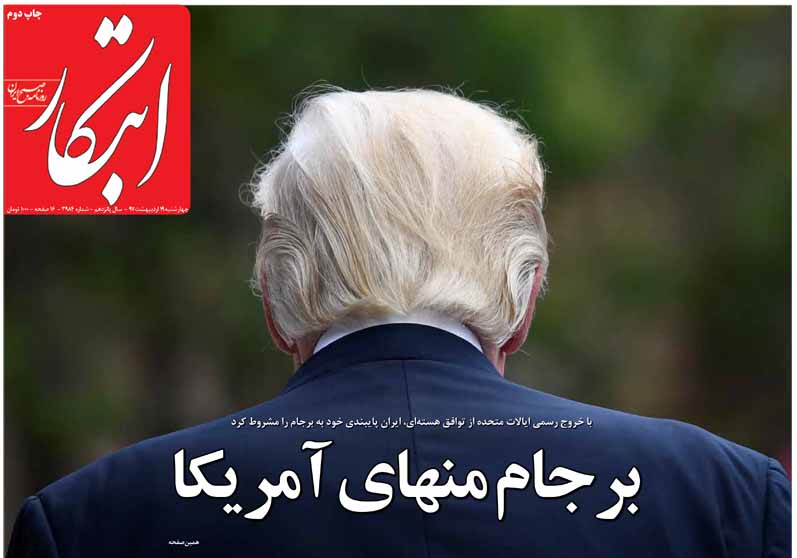 این روزنامه که به رسانه نزدیک به خانواده آیتالله هاشمی رفسنجانی مشهور است و در بین رسانههای اصلاحطلب سهم ویژهای در موضوعیت بخشیدن به حضور آمریکا در برجام دارد، در شماره روز شنبه (۱۵ آبان) خود، بار دیگر آمریکا را طرف اصلی مذاکره میداند و تیتر خود را به «رفع تحریمها فقط «مذاکره مستقیم با آمریکا» اختصاص میدهد.