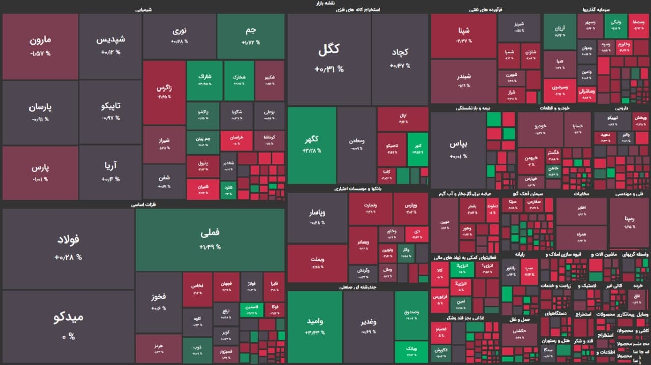 در بازار امروز، بیشترین ارزش معاملات مربوط به گروه فلزات اساسی، شیمیایی، خودرو و فرآوردههای نفتی میباشد که در این میان بیشترین میزان ورود پول حقیقی برای ۵ نماد کروی، شاراک، شفن، شپدیس و سمگا و بیشترین میزان خروج پول حقیقی برای ۵ نماد آریان، شبندر، شپنا، فولاد و وبملت ثبت شده است.