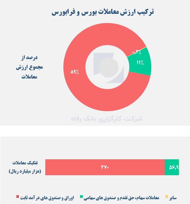 ارزش معاملات خرد در بازار امروز سهام به ۵ هزار و ۳۰۰ میلیارد تومان رسید که با در نظر گرفتن ارزش کل معاملات که عددی حدود ۵۲ هزار میلیارد تومان است، میتوان گفت از کل بازار معاملات سهام و اوراق مشارکت و صندوقهای سهامی و درآمد ثابت، تنها ۱۰ تا ۱۱ درصد ارزش معاملات به بازار سهام اختصاص داشت که این رقم تا ماه پیش، بیش از ۶۰ درصد بوده است.
