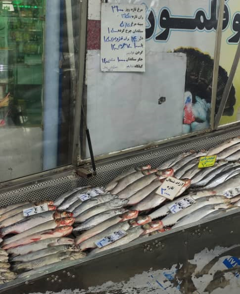 تابلوی قیمت مرغ در فروشگاههای مرغ و ماهی بازار قزوین
