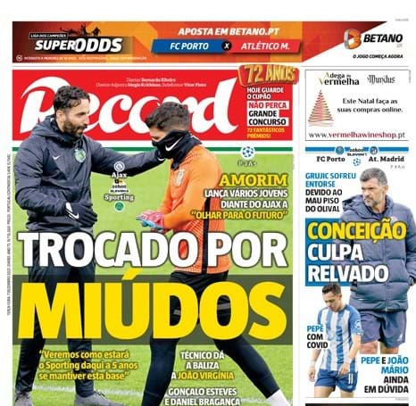 رکورد چاپ لیسبون اما جلد اصلی خود را به اسپورتینگ اختصاص داد که این تیم در بازی تشریفاتی خود با بازیکنان جوان به میدان خواهد رفت. البته در خصوص کونسیسائو و تیم پورتو نیز نوشت و از شرایط پورتو در جدال مقابل اتلتیکومادرید توضیحاتی داد.