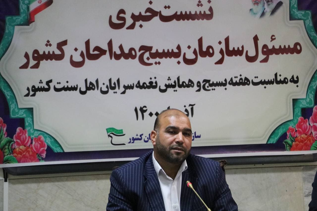 رئیس سازمان بسیج مداحان کشور با بیان اینکه این همایش به مناسبت هفته بسیج با حضور گروههای برتر اهل سنت از ۱۰ استان کشور برگزار خواهد شد، گفت: «همایش نغمهسرایان اهل سنت کشور» با شعار محوری «بسیج نغمه وحدت» از برنامههای محوری سازمان بسیج مداحان کشور در هفته بسیج است.