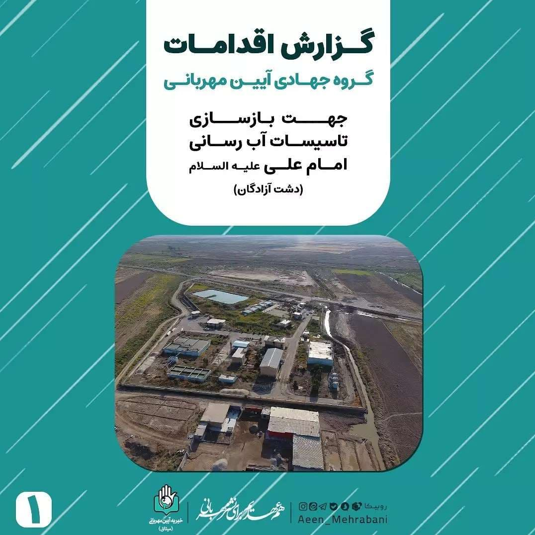 این مداح اهل بیت (ع) در آن زمان با انتشار ویدئویی در صفحه اینستاگرام خود، گزارشی از روند طرح بازسازی و اصلاح تأسیسات آبرسانی امام علی علیهالسلام سوسنگرد با هدف اصلاح وضعیت آبرسانی به ۴۴ روستا ارائه کرد و گفت: از تأسیسات امام علی علیهالسلام ۳۰،۴۰ سال گذشته و فرسوده شده است و امنیت لازم را ندارد. این طرح ۲ میلیارد تومان هزینه دارد و بنا داریم در گام اول با مبلغ ۵۰۰ میلیون تومان فاز اول آن را آغاز کنیم.