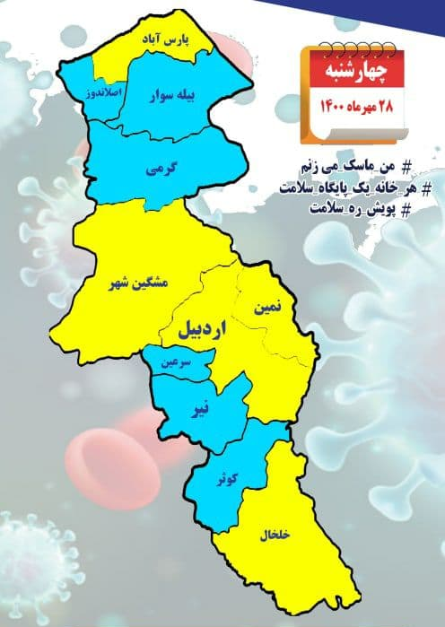 هماکنون شهرستانهای اردبیل، خلخال، پارسآباد، مشگینشهر و نمین در وضعیت زرد (خطر متوسط) و شهرستانهای کوثر، سرعین، بیلهسوار، اصلاندوز، نیر و گرمی در وضعیت آبی (کمخطر) قرار دارند.