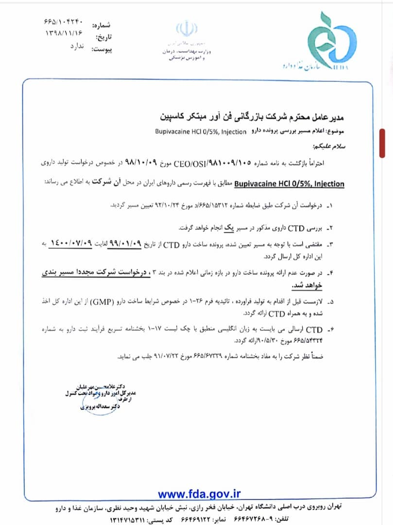 در زمان دریافت مجوز نهایی خود از سازمان غذا و داروی کشور فردی مجهولالهویه با بنده تماس گرفت و خود را موثر در سازمان غذا و داروی کشور معرفی و درخواست کرد در صورتی که مبلغ ۵ میلیارد تومان به وی پرداخت کنم همه مجوزات ما در اسرعوقت صادر میشود که ما نیز ضمن امتناع، گزارش مذکور را به نهادهای ذیربط دادیم اما نهایتا شاهد آن بودیم که از زمان تماس آن فرد تا زمان دریافت مجوز بیش از ۵ ماه معطل شدیم.